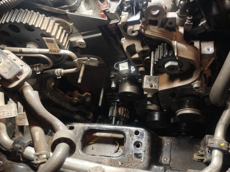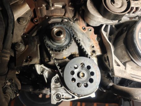 Hier wurde bei einem Skoda Octavia 2.0 TDI der Zahnriemen für den Kurbeltrieb zwischen Kurbelwelle, Nockenwelle, Wasserpumpe und Hochdruckpumpe erneuert. Dazu wurde noch die Ölwanne demontiert um den Zahnriemen zwischen Kurbelwelle und Ölpumpe zu ersetzen der im Ölbad läuft und gerne der Abrieb sich im Ölsieb der Ölpumpe absetzt und eine Mangelschmierung des Motors verursachen kann. Das Kühlsystem wurde neu befüllt nach dem ersetzen der Wasserpumpe.