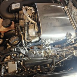 An einem C63s AMG mit dem 4.0 V8 Biturbo wurde ein großer Service mit original Zündkerzen, original Ölfilter mit Wolf Racing Motoröl gewechselt, Bremsflüssigkeit erneuert und der Innenraumfilter ausgetauscht.